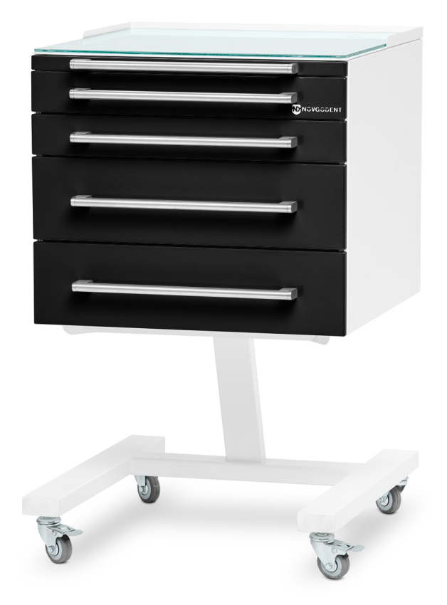 Передвижной медицинский инструментальный столик состоит из столешницы и 4-х ящиков.