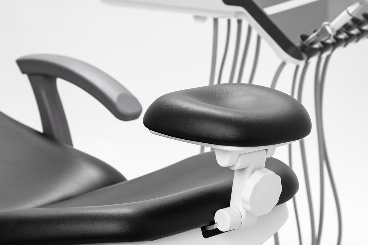 Многие стоматологи выбирают именно нижнюю подачу потому, что так пациент не видит инструментов и не испытывает напряжения. Кроме того, модуль располагается довольно низко и за инструментами не нужно далеко тянуться. Модуль врача рассчитан на 6 инструментов, он имеет пульт управления креслом.