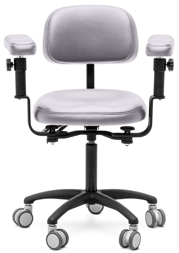 Стул можно легко отрегулировать под ваши индивидуальные параметры. Он очень легко перемещается по кабинету благодаря бесшумным колёсам Steinco.